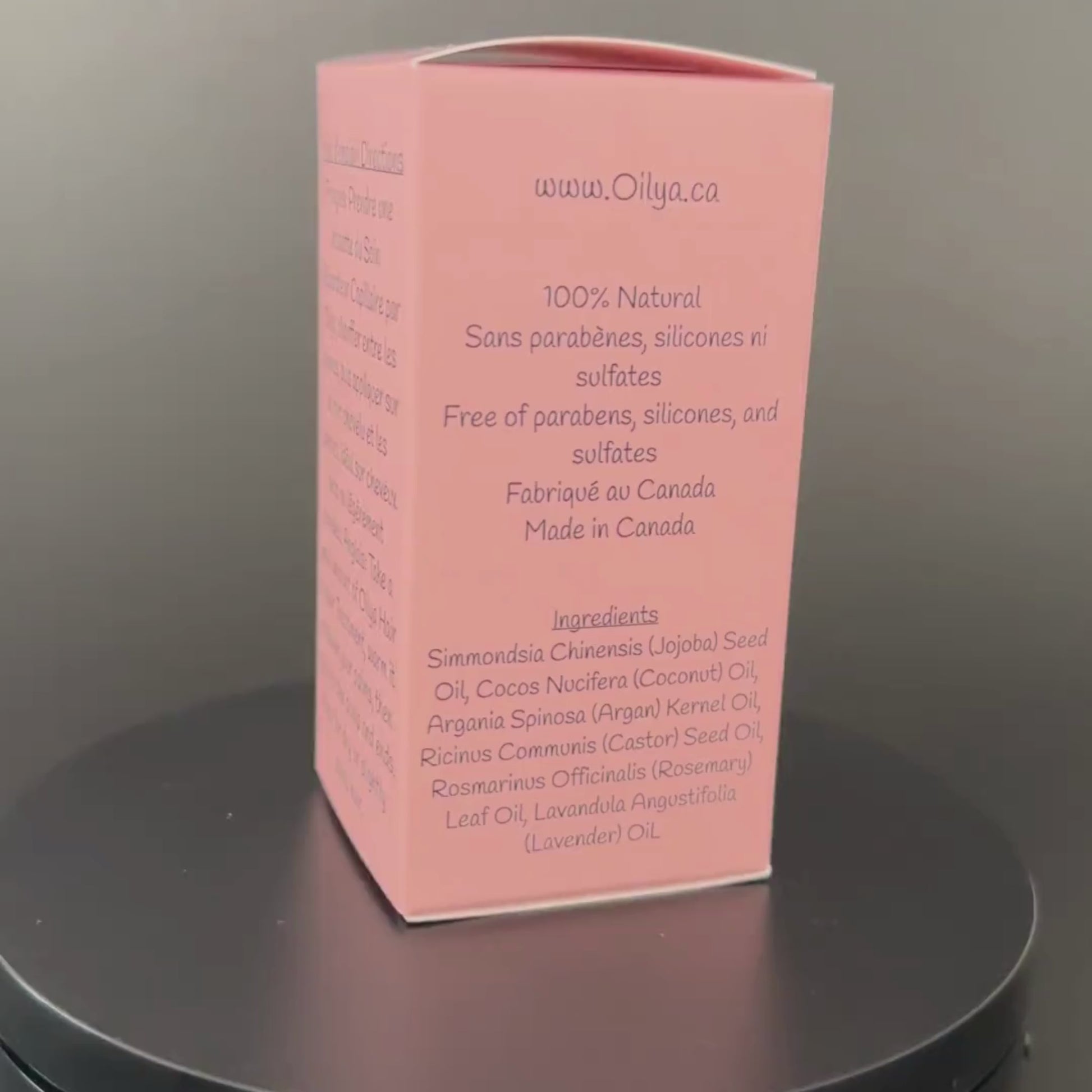 A blend of natural oils carefully chosen with love: jojoba, coconut, argan, castor, rosemary, and lavender. Together, they nourish, repair, stimulate, and make your hair shine like never before.